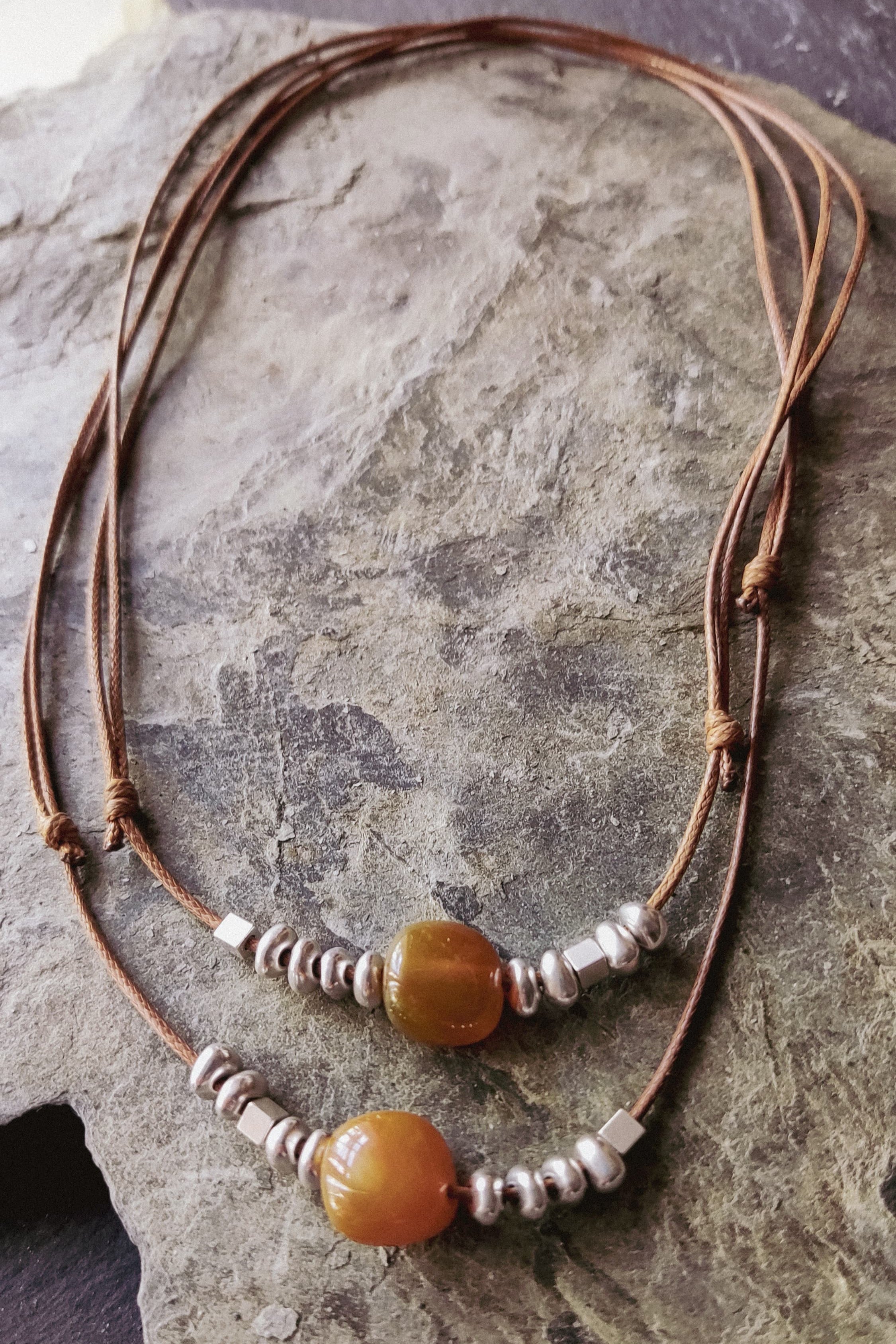 Para quem gosta de fios curtos, este Choker é perfeito. Feito com fio de algodão ajustável, peças prateadas em zamak e uma pedra natural ao centro.