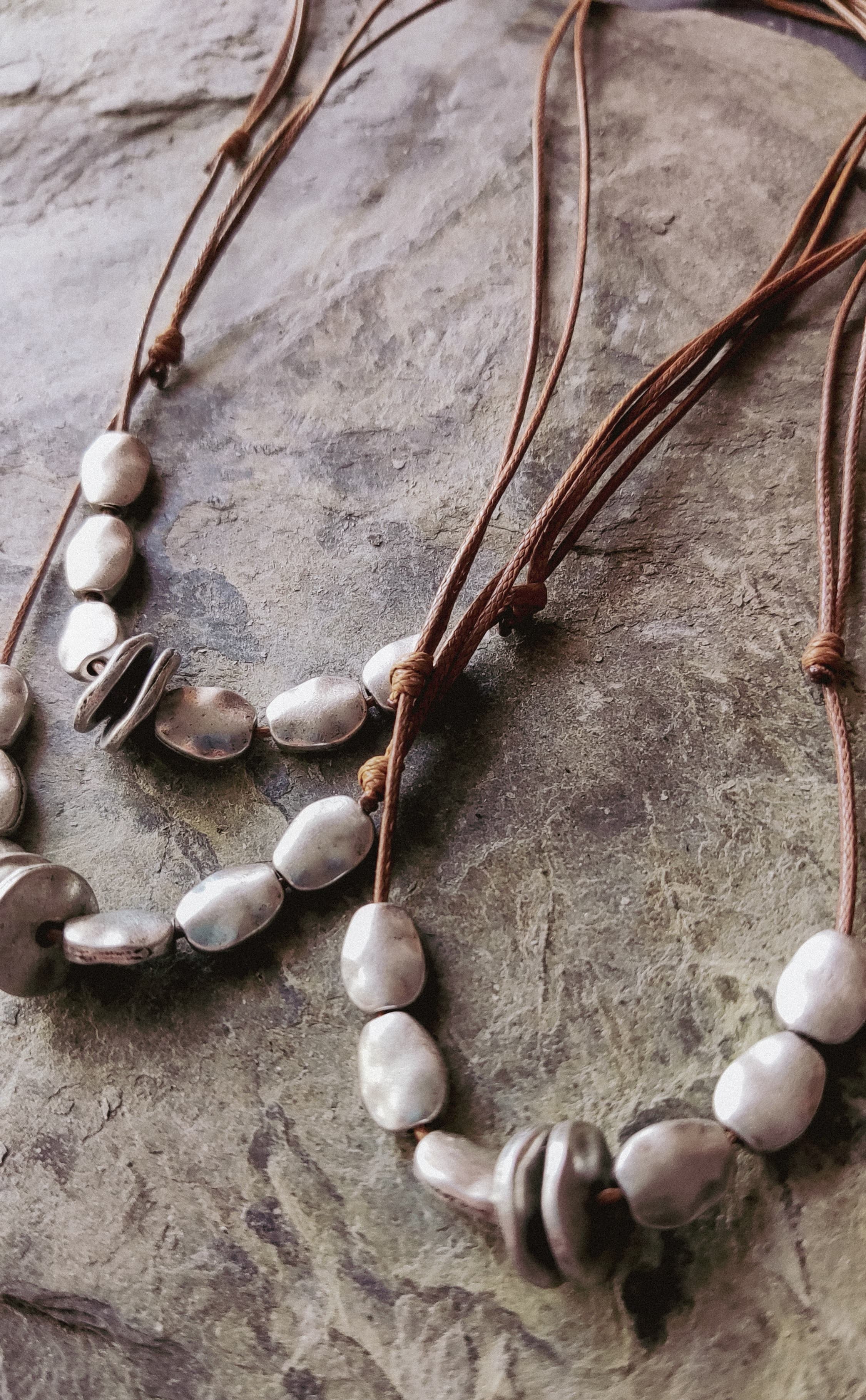 Choker em fio de algodão ajustável com peças prateadas em zamak. Num estilo muito próprio este Choker marca pela originalidade.