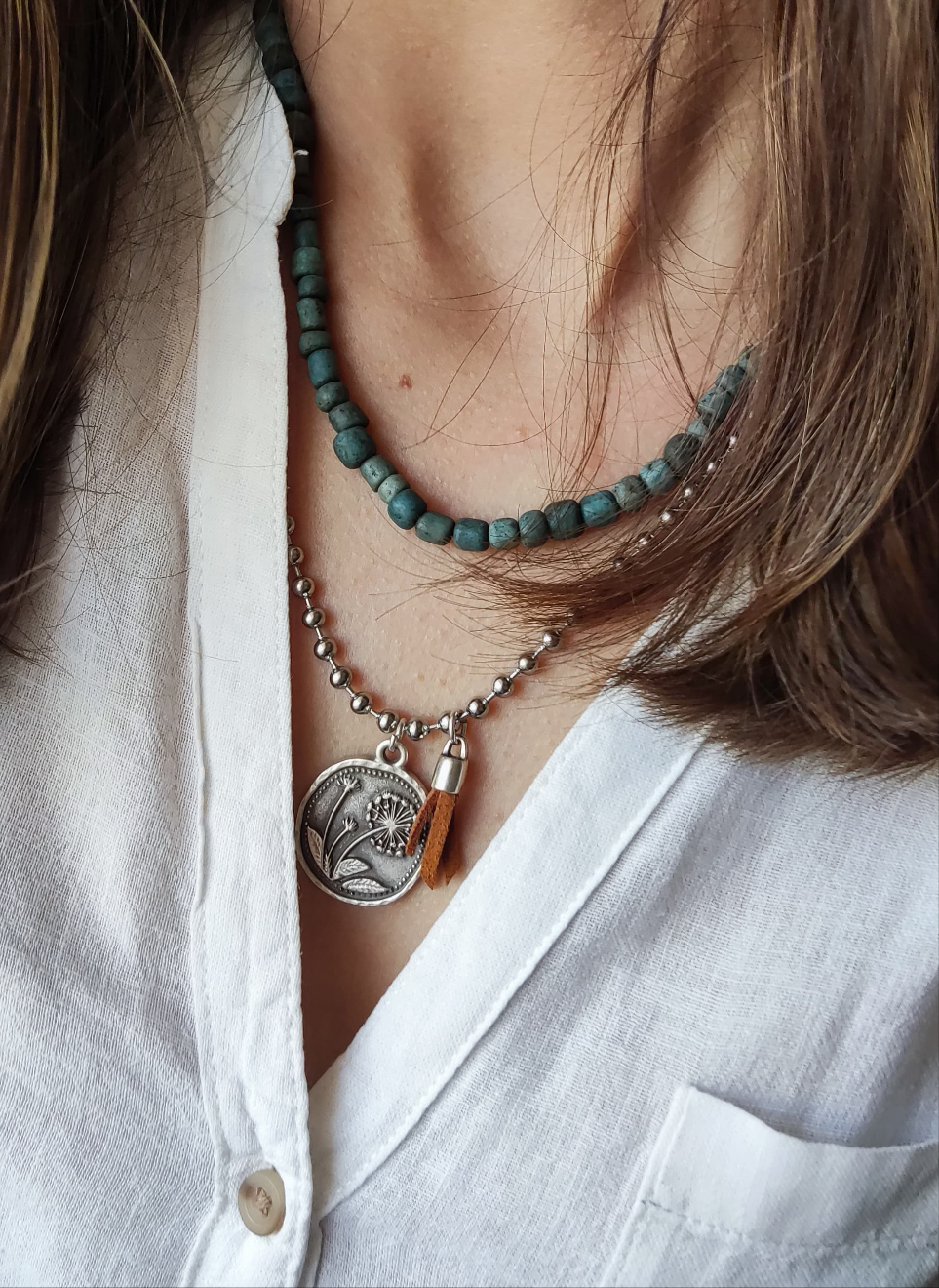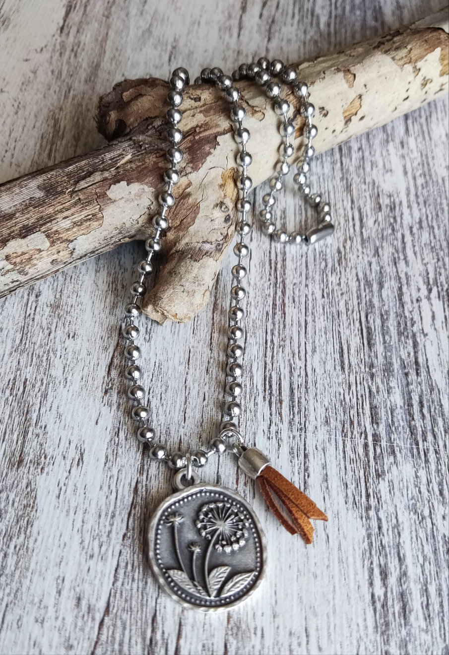 Fio de aço inoxidável com medalha "Flor de Lótus" banhada a prata.